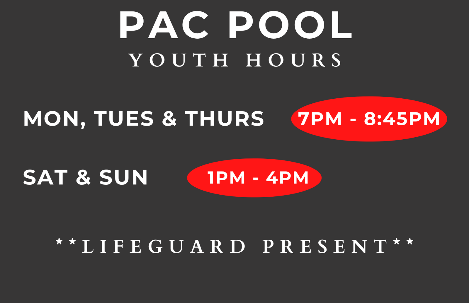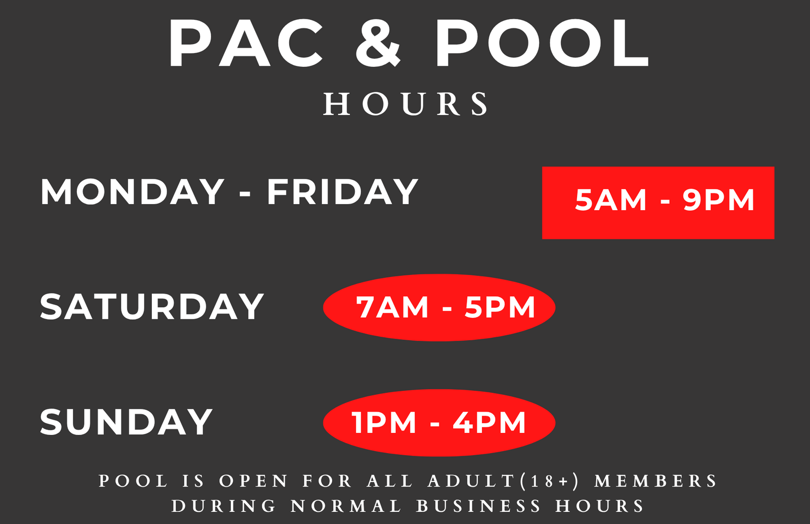 HOURS OF OPERATION POOL HOURS